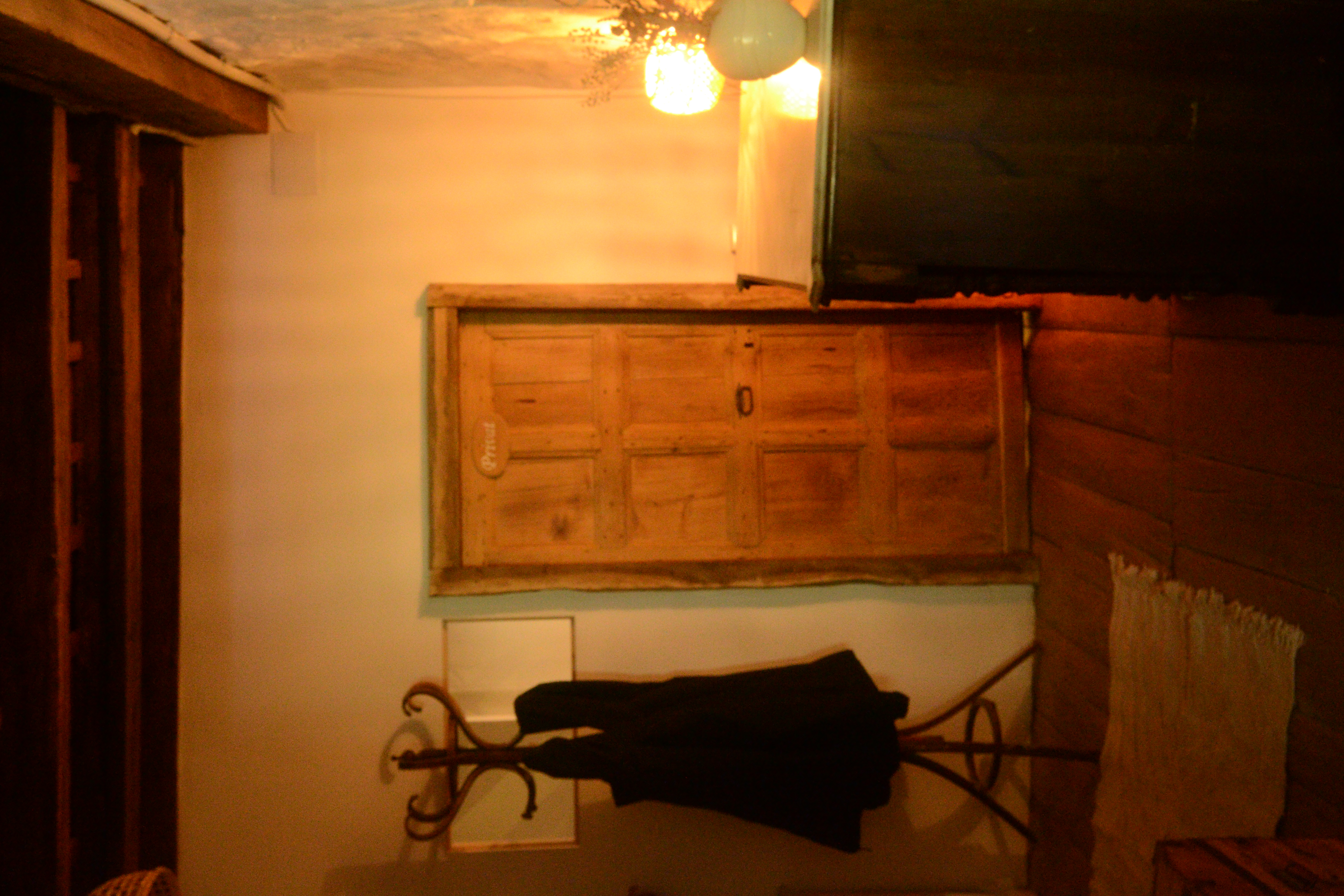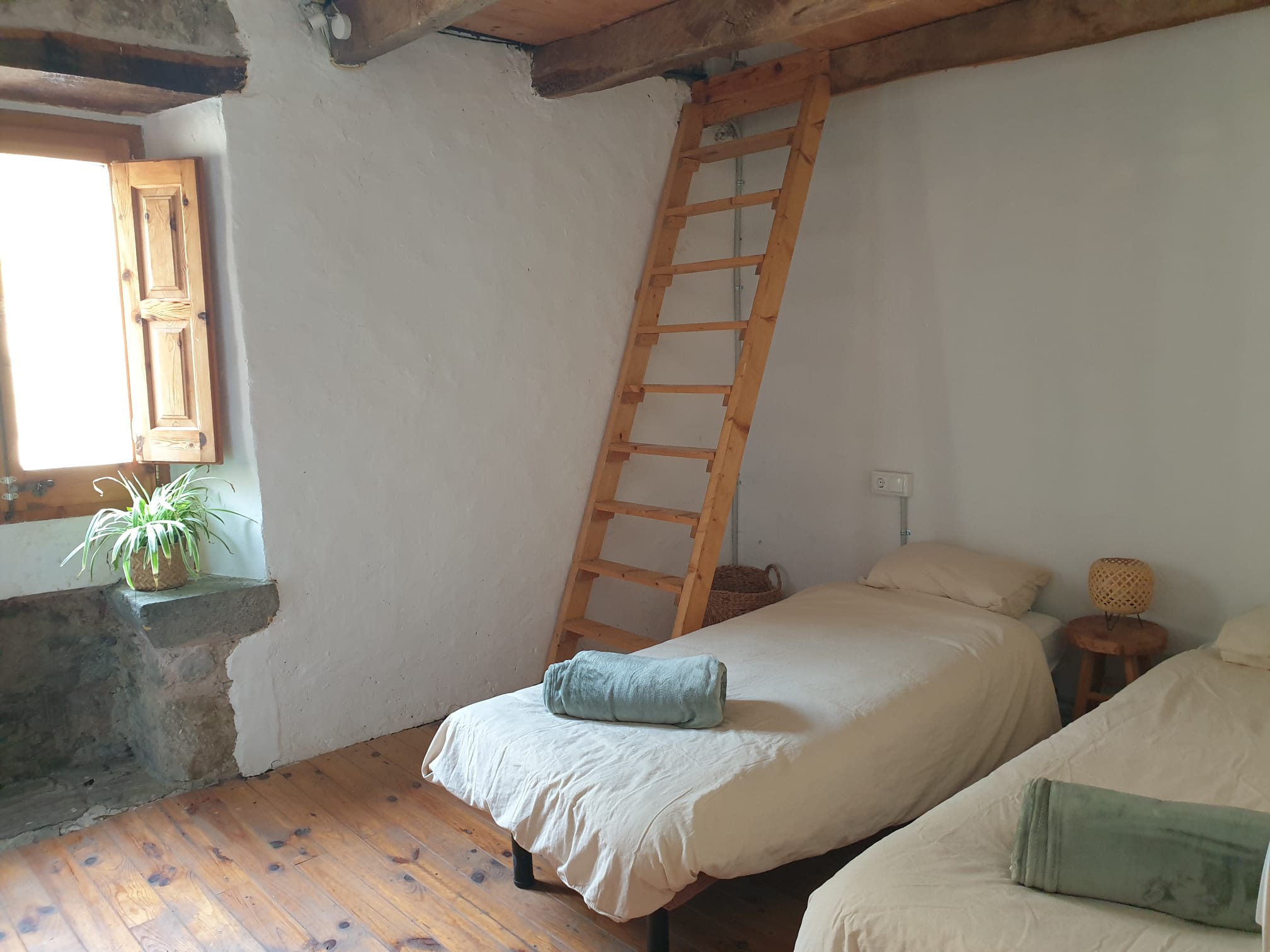 Habitación con altillo. 2 camas individuales abajo y 2 camas individuales arriba. Estufa de pellets. Habitación sobre la puerta de entrada..